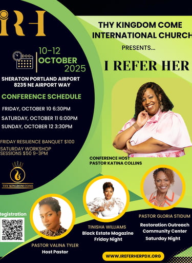 I Refer Her Conference is a Three-Day Resilience & Elevation event focused on equipping, inspiring and encouraging women to recognize the gift they are and use their experiences (bad and good) to fuel and push them forward. This gathering offers a nurturing space for women to unlock potential and build connections with like-minded individuals with the goal being to refer her.